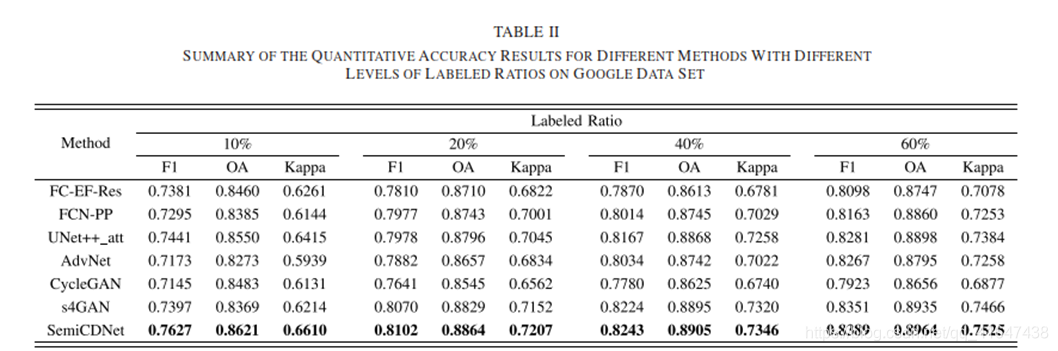为了解决上述提到的问题,我们提出一个用于VHR遥感影像的先进的半监督的变化检测网络SemiCDNet。