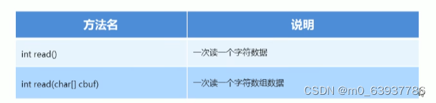 //int read ( char[ ] cbuf),一次读一个字符数组数据char[]chs = new char[ 1024];