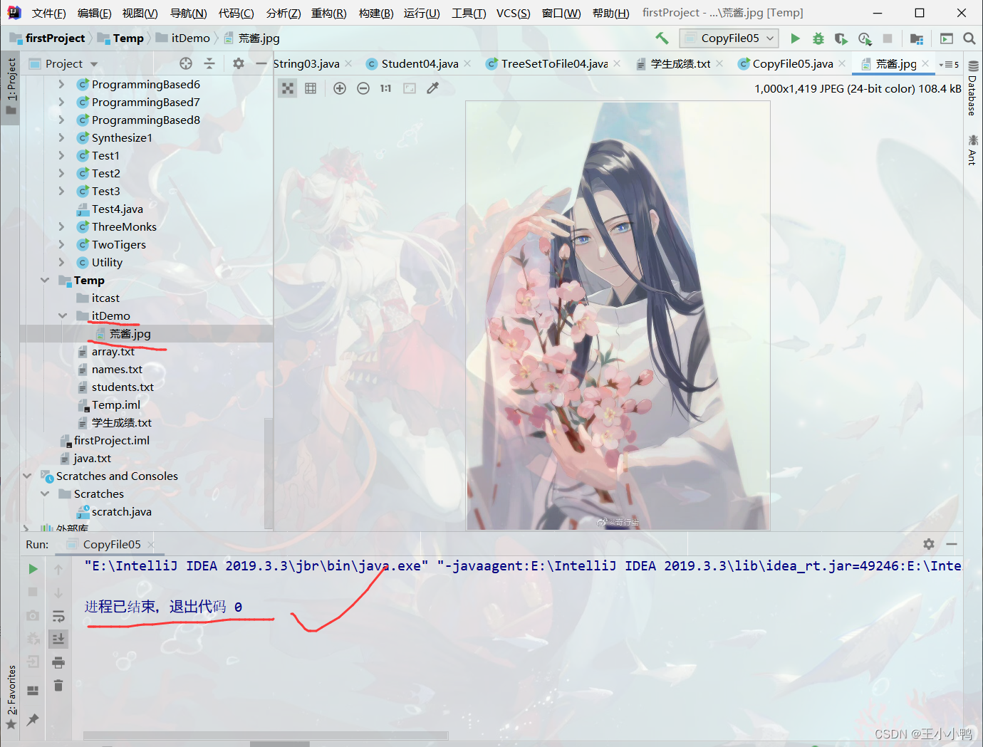 由于不清楚数据源目录下的文件都是什么类型的,所以采用字节流复制文件