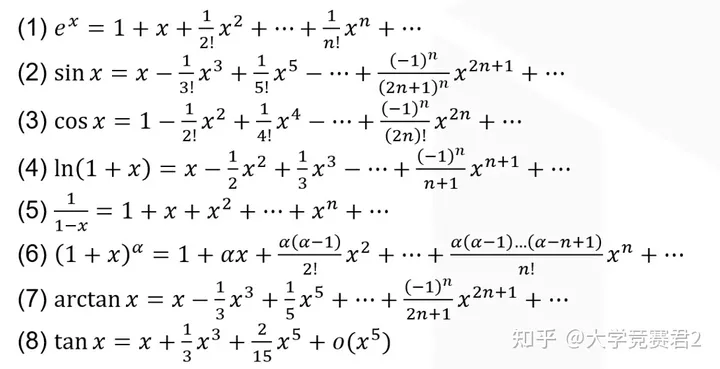 ①常用泰勒展开式(这里是泰勒级数,竞赛中多用于求极限)