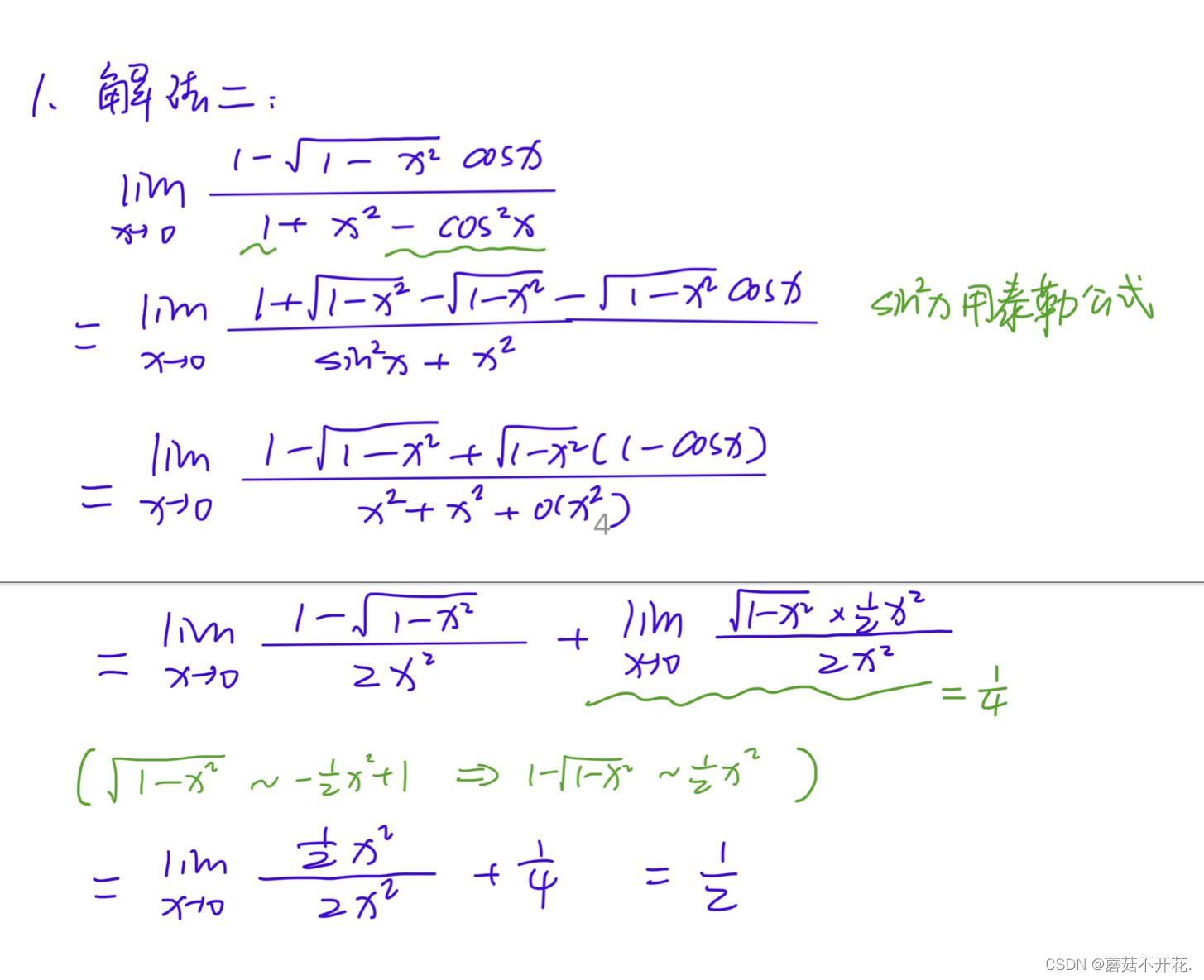 注:第一步到第二步用到了带皮亚诺余项的泰勒公式。