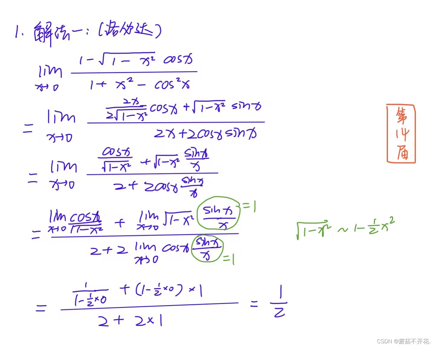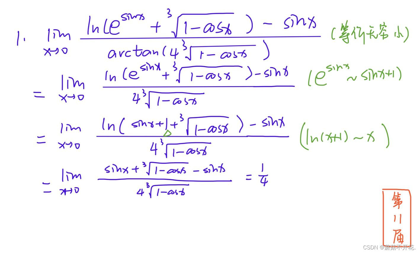 注:此处的等价无穷小为1,详细可见上一篇文章。