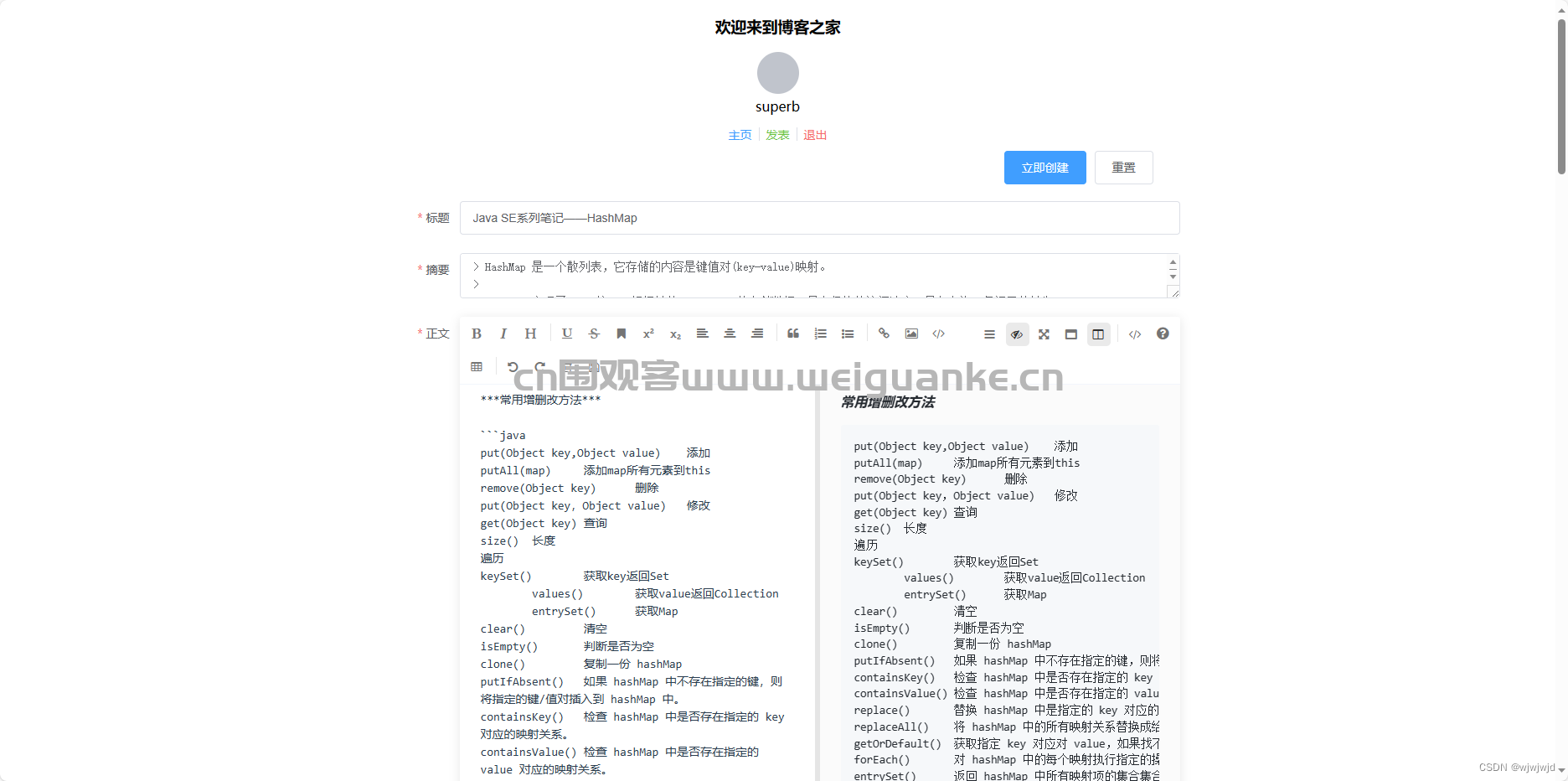 前后端分离的个人博客系统 技术使用:SpringBoot、Vue、MySQL、Druid、axios、MyBatisPlus、elementUI等