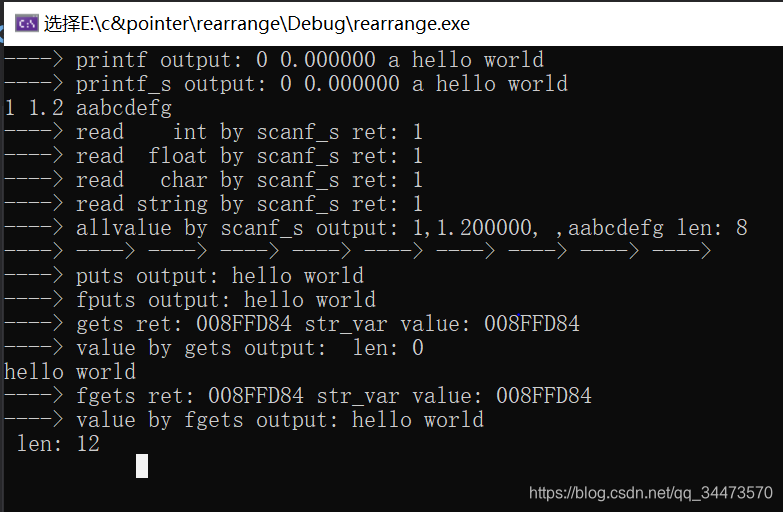 printf_s("----> allvalue by scanf_s output: %d,%f,%c,%s len: %d\n", i_var, f_var, c_var, str_var, strlen(str_var));