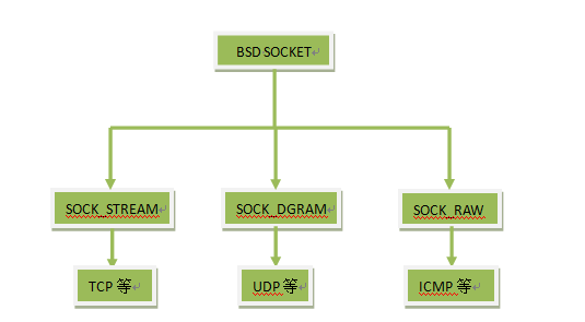答案就是通过这三个参数来确定一组固定的操作。我们说过抽象的socket对外提供了一个统一、方便的接口来进行网络通信,但对内核来说,每一个接口背后都是及其复杂的,同一个接口对应了不同协议,而内核有不同的实现,幸运的是,如果确定了这三个参数,那么相应的接口的映射也就确定了。在实现上,BSD就把socket分类描述,每一个类别都有进行通信的详细操作,分类见下图。而对socket的分类,就好比对unix设备的分类,我们对设备write和read时,底层的驱动是有各个设备自己提供的,而socket也一样,当我们指定不同的so_type时,底层提供的通信细节也由相应的类别提供。看图四