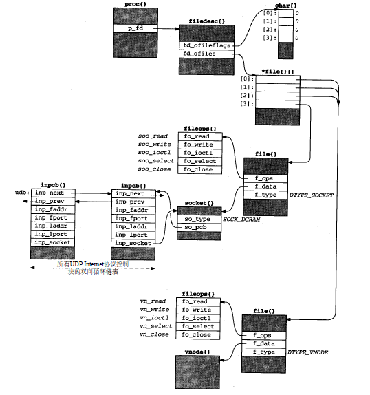 这里解释一下图三,图三其实是使用AF_INET,SOCK_DGRAM,IPPRTO_UDP实例化之后的一个具体的socket。