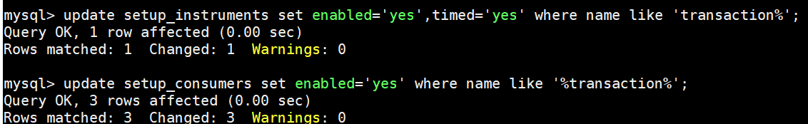 update setup_instruments set enabled='yes',timed='yes' where name like 'transaction%';