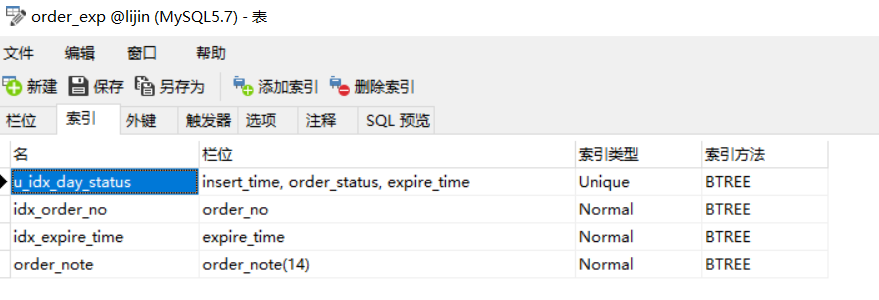 对于主键和唯一二级索引则没有这个问题,它们本身就可以保证索引列值的不重复,所以也不需要再统计一遍在索引列后加上主键值的不重复值有多少。比如u_idx_day_statu和idx_order_no。