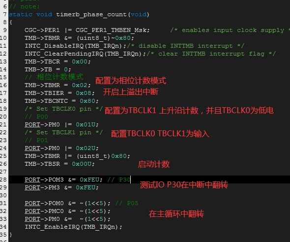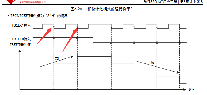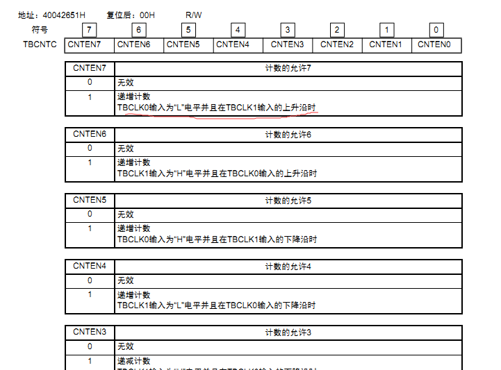 其实就是捕获外部信号波形,TBCLK0 TBCLK1,组合起来。定时器B对把外部信号作为时钟来计数,根据不同的配置实现计数递增还是递减。边沿可以任意选择。