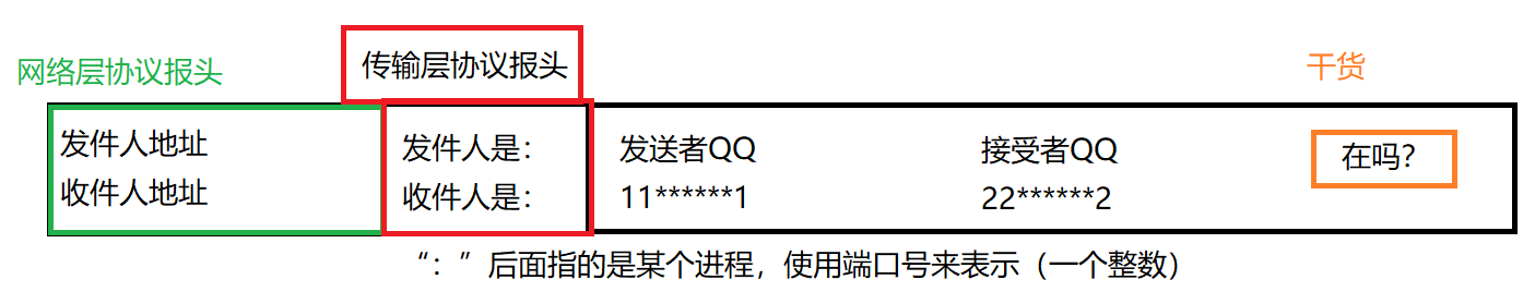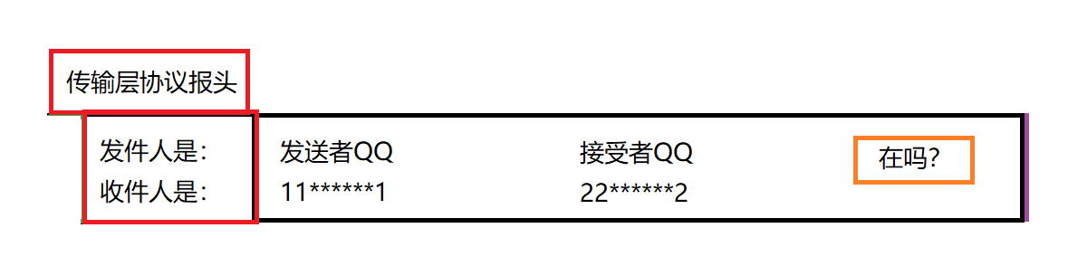 2、应用层协议把数据要交给传输层协议,来进一步封装。封装的意思就是给刚才的数据基础上再加上一个传输层协议报头。(报头:也是字符串连接,可以看成发快递的标签)