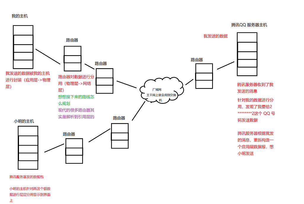 - 分层能够避免某个协议过于庞大。(类似于写代码,如果代码太复杂,就要拆分成多个文件)【互联网上需要考虑问题有很多】