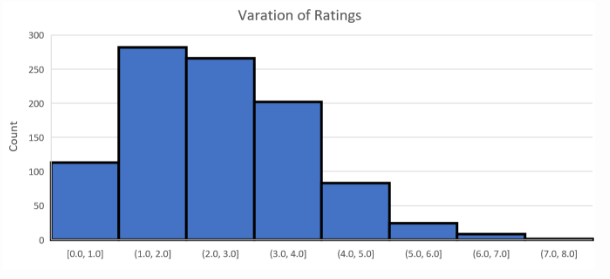 下图显示了相同论文得到评分的最大差值。我们观察到,对于大多数(约 87%)论文来说,最大差值小于3。