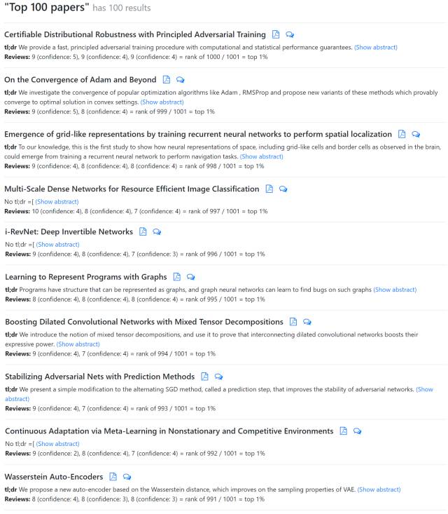 下面,我们将简要介绍目前ICLR 2018大会评审中排名前五的论文。