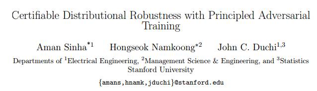 摘要:神经网络很容易受到对抗样本的干扰,因此研究人员提出了许多启发式的攻击与防御机制。我们采取了分布式鲁棒优化的原则,以保证模型在对抗性扰动输入的条件下保持性能。我们通过给予 Wasserstein ball 上的潜在数据分布一个扰动来构建 Lagrangian 罚项,并且提供一个训练过程以加强模型在最坏的训练数据扰动情况下能持续正确地更新参数。对于平滑的损失函数,我们的过程相对于经验风险最小化可以证明有适度的鲁棒性,且计算成本或统计成本也相对较小。此外,我们的统计保证允许我们高效地证明总体损失的鲁棒性。因此,该研究结果至少匹配或超越监督学习和强化学习任务中的启发式方法。