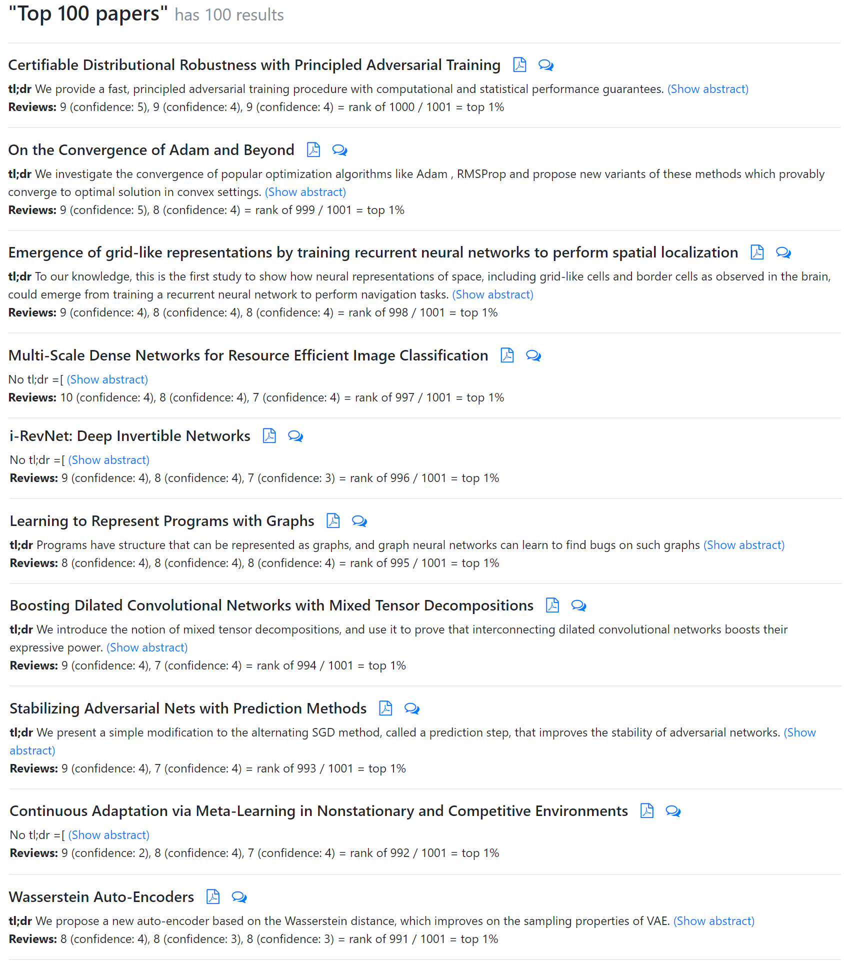 论文评分前一百名结果:http://search.iclr2018.smerity.com/