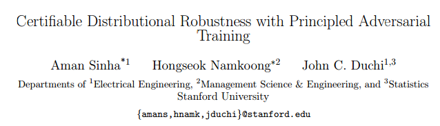 论文 1:Certifiable Distributional Robustness with Principled Adversarial Training