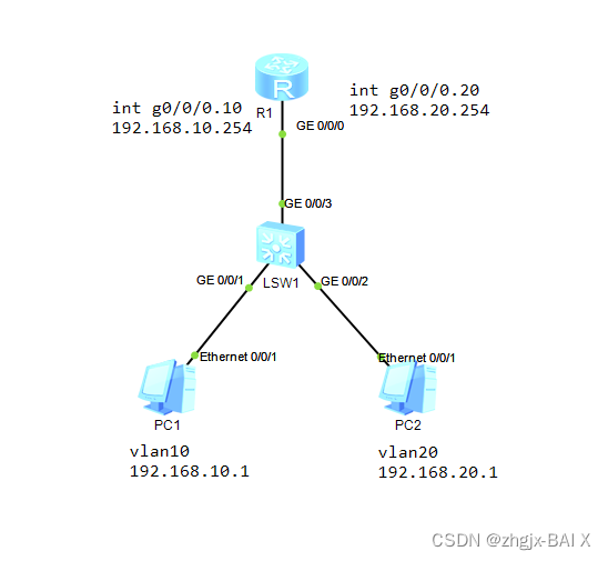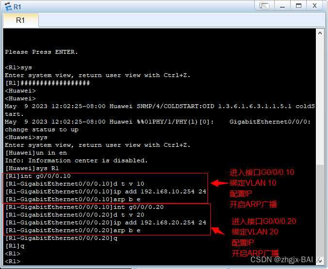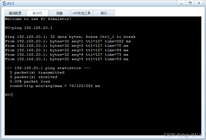 测试结果表明VLAN 10的设备能够访问VLAN 20