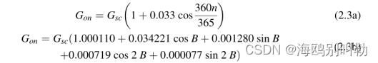 其中,Gon为与每年第n天的辐射垂直的平面上的地外辐射入射量,B为: