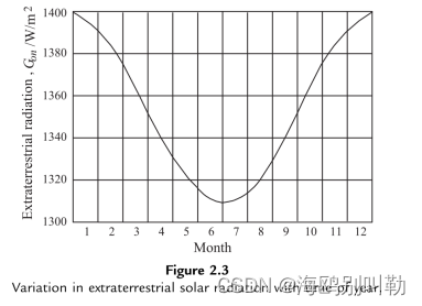 地日距离的变化导致地外辐射通量的变化范围为±3.3%。地外辐射对一年时间的依赖性如下,
