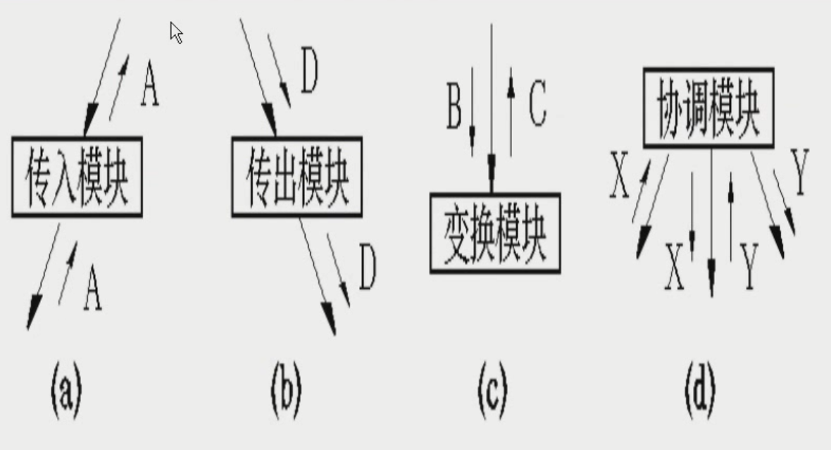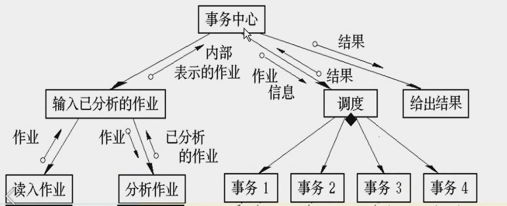 事务分析:也是从分析数据流图开始,自顶向下,逐步分解,建立系统到结构图