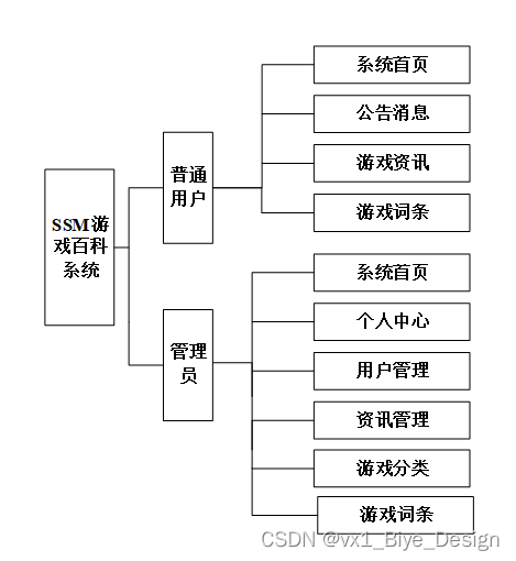 本系统主要分为前端和后端两大板块,其中包括了首页、轮播图、公告栏、资源管理(游戏资讯、资讯分类)系统用户(管理员、注册用户)模块管理(游戏分类、游戏词条、留言板)等功能模块。