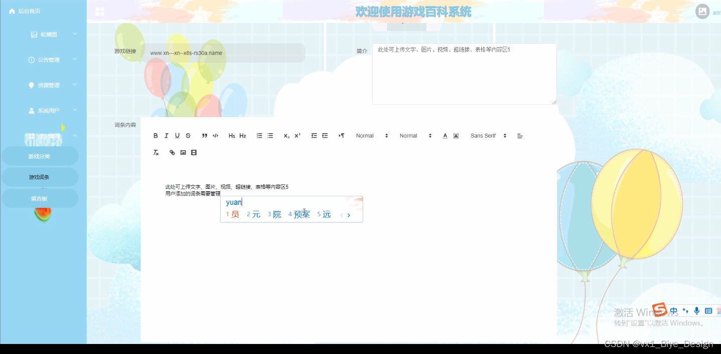 | | 添加游戏词条信息 | 管理员添加游戏词条信息 | 游戏词条的相关信息 | 游戏词条信息列表 |