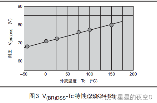 在选定器件的Vds耐压时,需要考虑电路运行条件的电源电压VDD以及开关断开时产生的浪涌电压Vds(peak)。并且,因为Vds对于温度具有正温度特性(见图3),所以必须考虑使用的最低温度环境条件,即考虑使用环境中Vds可能出现的最小值是否符合电路要求。