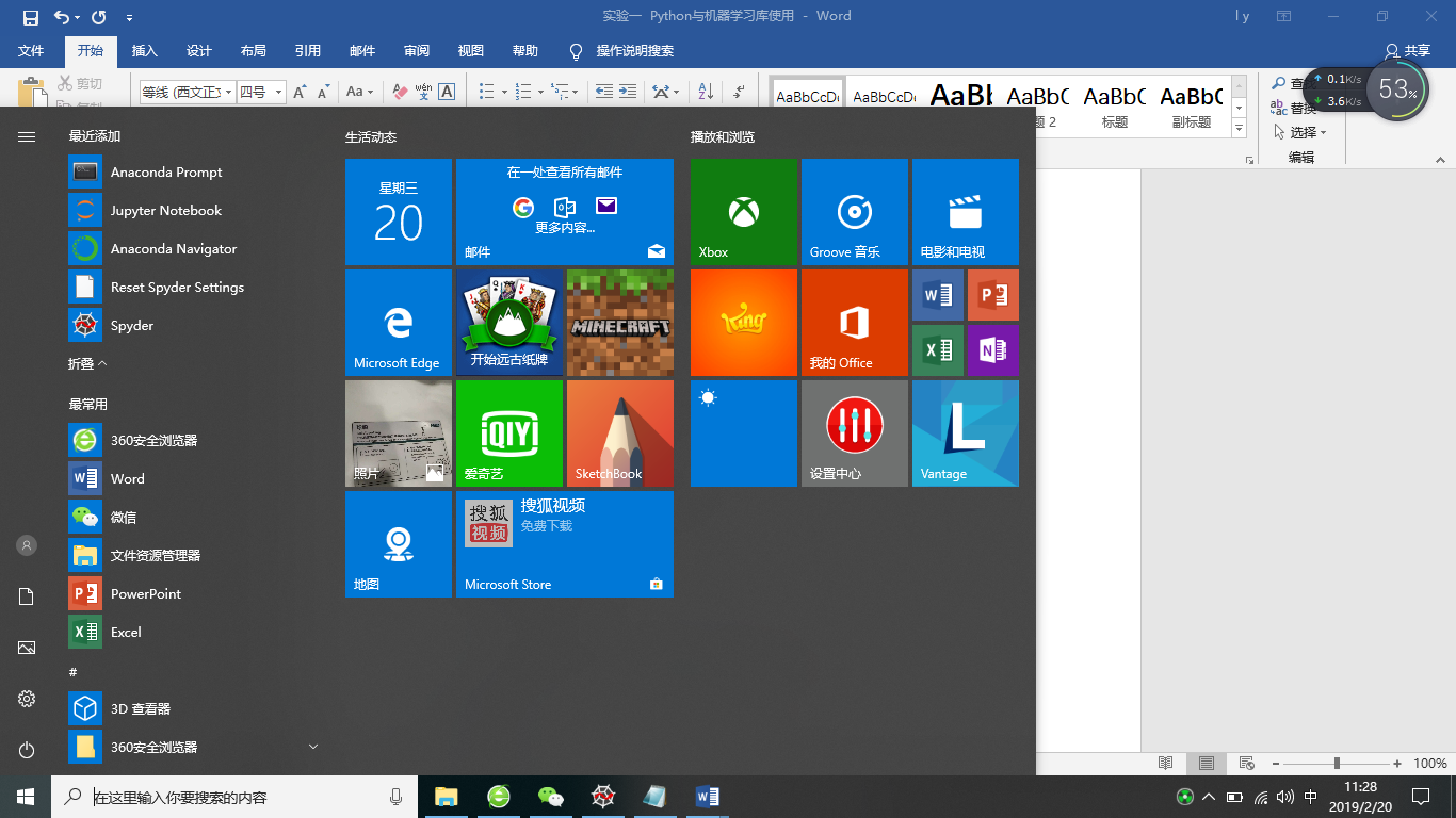 - 按下 Windows 徽标键,调出 Windows 开始菜单,可以看到 “最近添加”的:Anaconda3(64-bit)