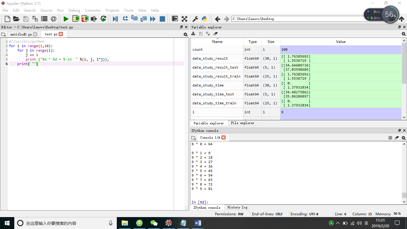 测试运行下列代码(打印乘法表):