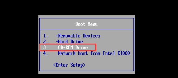 2.1 挂载好光盘,开机按Esc,选择CD-ROM
