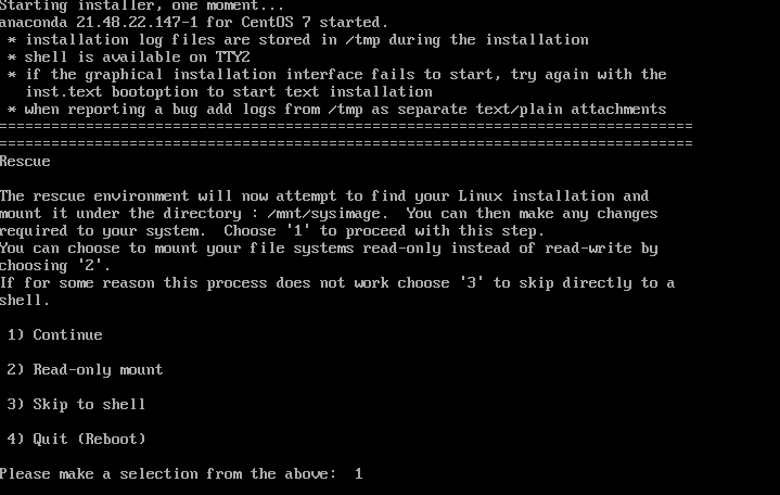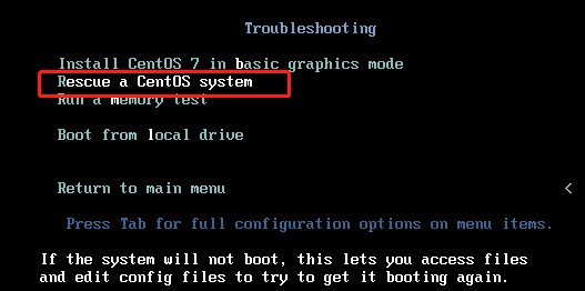 思路:1. 进入救援模式,找到需要恢复的数据; 2. 进入救援模式下后,需要配置网络将数据传输出来;3.通过scp将数据传输到其他的服务器上;