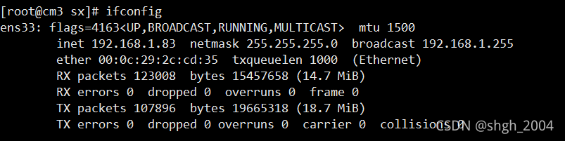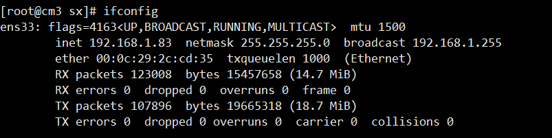 我的网卡的名称位 ens33.( 这里我已经指定好了)