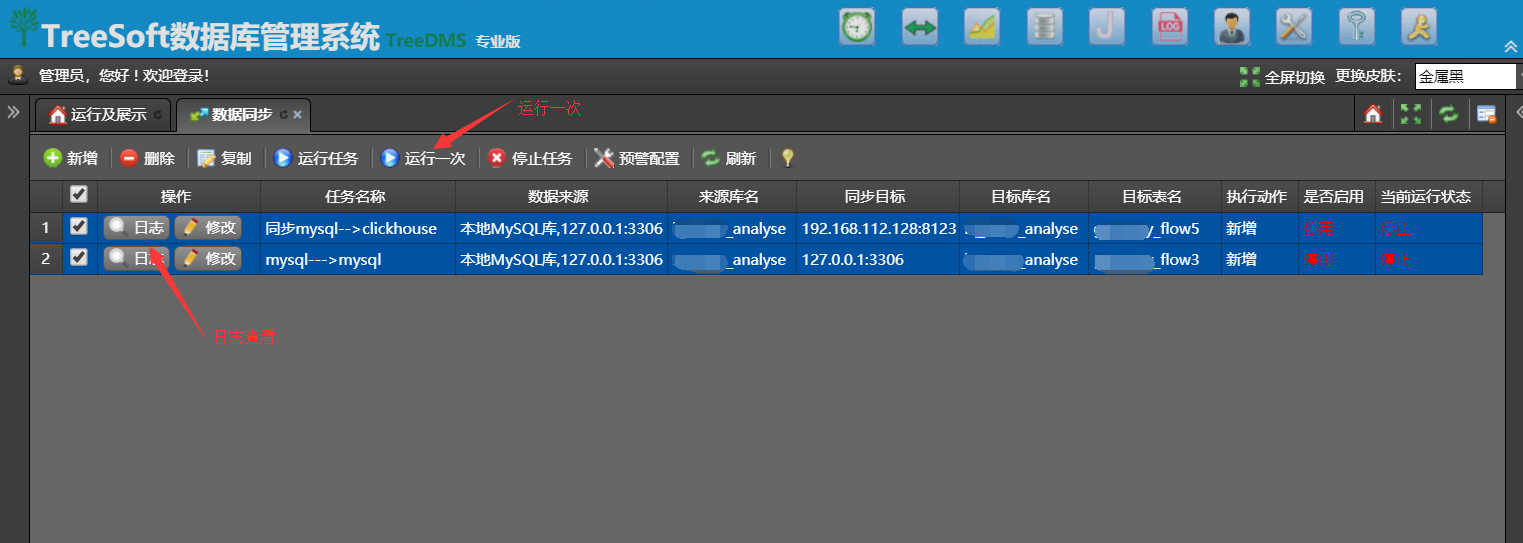 3、【运行一次】任务验证效果,可查看执行日志确认。如果循环执行,就点【运行任务】。