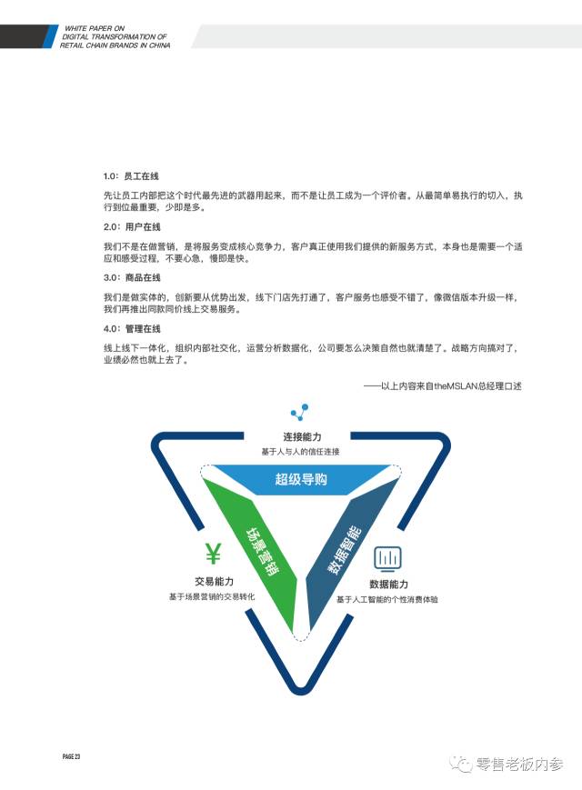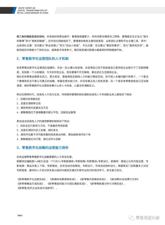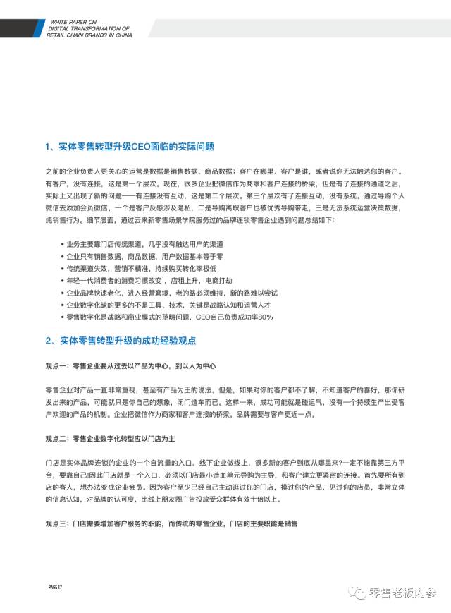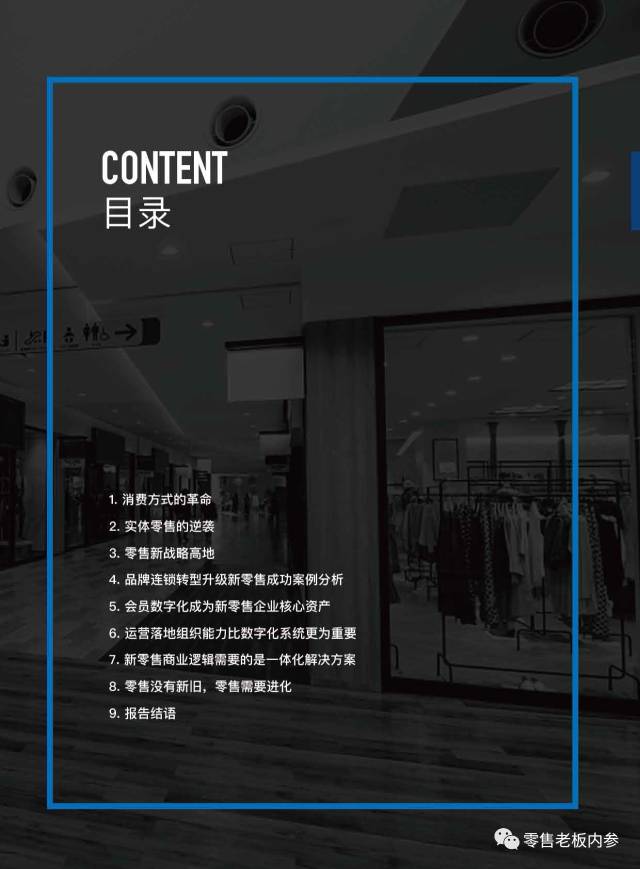摆在各位面前的这份报告,从零售数字化这个维度入手,对于实体零售的转型路径可能进行了深入全面的分析。该报告由《零售.进化》企业家实地访谈组和云来.新零售场景学院(服务累计超过1000家品牌零售)整理输出。其中深圳市零售商业协会、深圳市连锁经营协会、上海市连锁经营协会、昆明市连锁经营协会、浙江省连锁经营协会、江苏省连锁经营协会一并参与过报告调研沟通。《零售老板内参》APP(微信ID:lslb168)经授权首发此报告,供零售业同仁参考。报告一共60页,总目录如下: