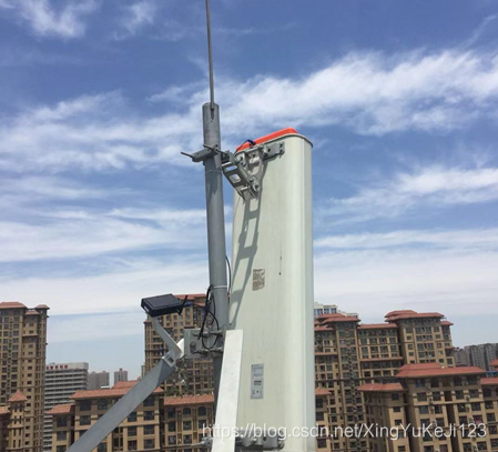 2、辅助设备,安装在抱杆上,包含电源模块、通信模块,通过网线连接高精度测向仪,进行供电和数据连接,并将测量数据通过通信模块传送到“监控中心”。
