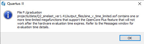 注意:如果出现了如图所示的time_limited.sof IP核破解错误,可以去看我另一篇文章的解决办法
