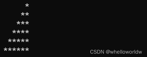 从键盘中输入直角边长度为6等腰三角形,等腰三角形要求使用字符 '*' 进行打印输出