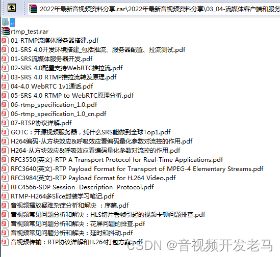 关注+后台私信我,领取2022最新最全学习提升资料包《Andoird音视频开发必备手册+音视频最新学习视频+大厂面试真题+项目实战源码讲义》资料内容包括(C/C++,Linux,FFmpeg ,webRTC ,rtmp ,hls ,rtsp ,ffplay ,srs)等等