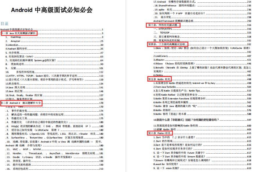 接下来我们针对【字节跳动】、【腾讯】、【阿里巴巴】一线互联网大厂等最新收集整理 Android 中高级面试展开的完整面试题