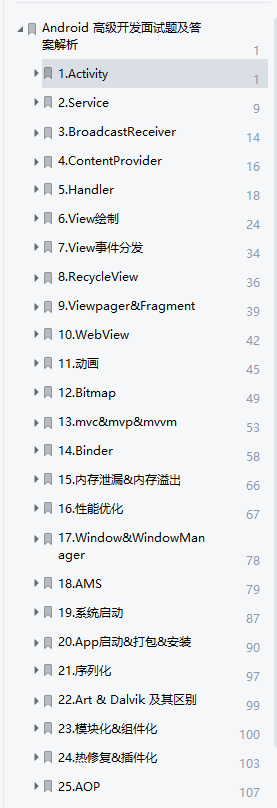 在过去不久的金九银十,有些小伙伴已经找到了理想的工作,当然也有很多小伙伴因为准备不充分,面试挂了,临近年关,最近有很多网友都在求大厂面试题。正好我在9月份和10月份整理和收集了 Android 中高级面试真题解析,于是就发上来分享给大家。