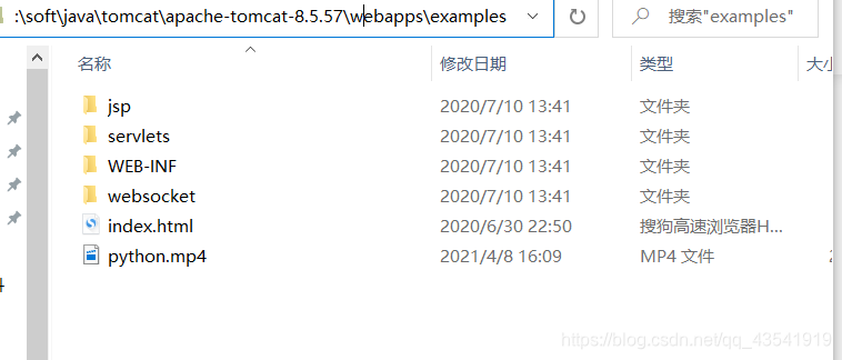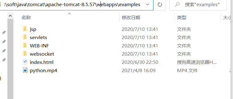首先找到文件webapps下的examples目录并打开,把视频文件放在该目录下