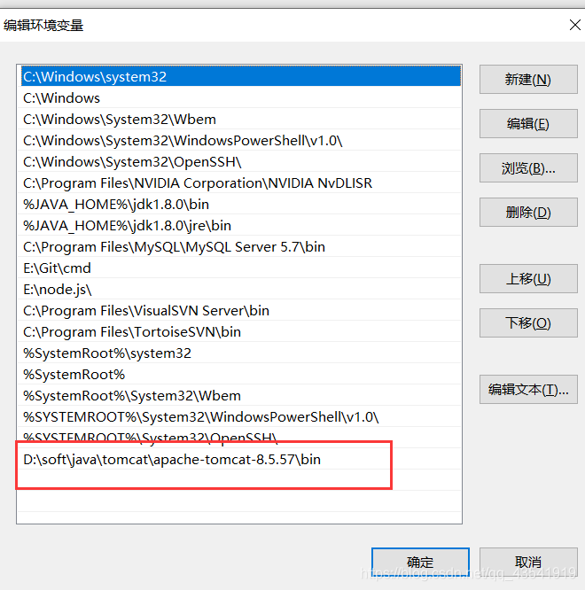出现问题的原因没有配置好路径,所以我们要配置好java的环境变量和tomcat的环境变量,java的环境变量的配置,之前的博文(https://editor.csdn.net/md/?articleId=105258882)已经提到过了,tomcat环境变量只需要在path后面新增一个就可以了,这个时候启动starup.bat后,再输入localhost:8080就能正常访问了。