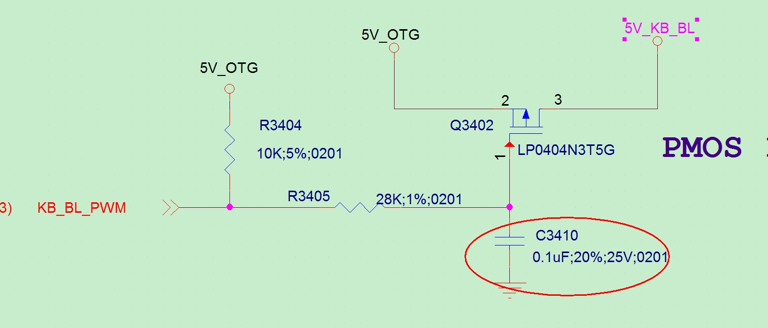 1. 电容上电瞬间交流导通,导致PMOS开启,如下波形(尖峰时电容导通导致),BOM请去掉C3410