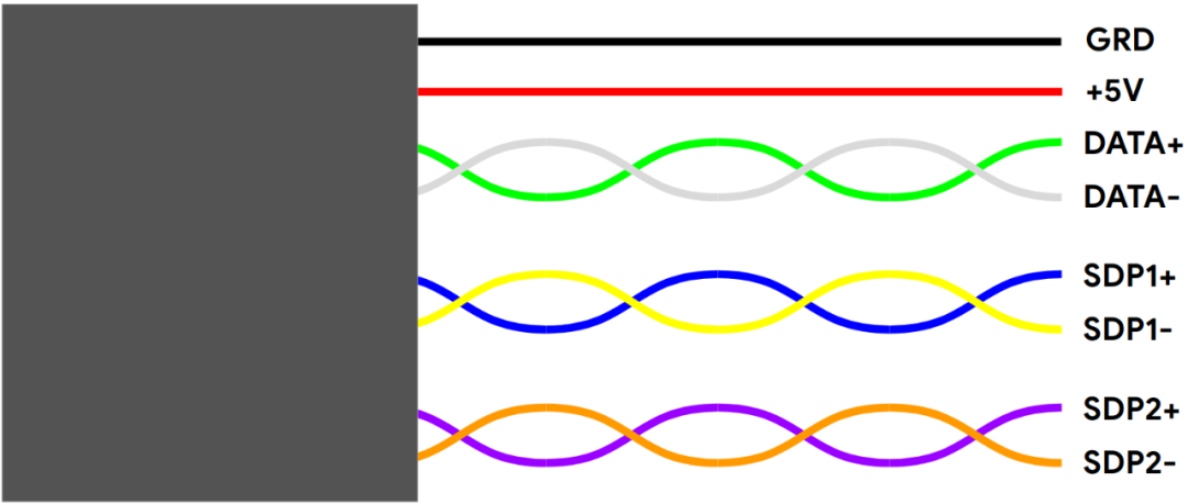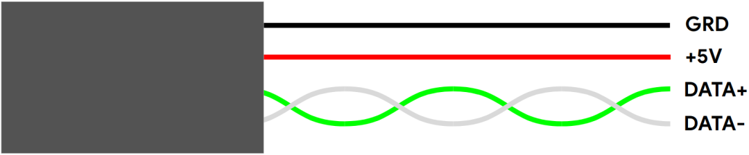 USB 2.0 数据线中有四根线缆。其中两根用于供电,另外两根用于数据传输。