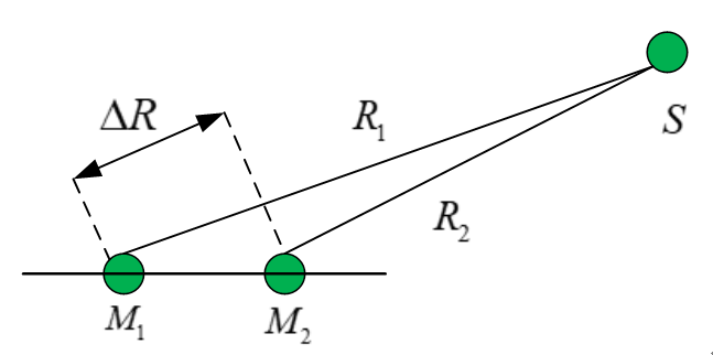 由于麦克风阵列中阵元距离声源的间距不等,当声波传递到阵元时,会在其之间产生延时差值,时间差结合阵元结构的几何关系,可以估计出声源的方位信息。