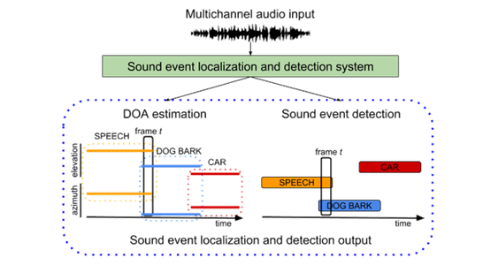 多声源检测与定位系统(sound event detection and localization,SEDL)的目标是输出声音的标签和声音方位信息(仰角和方位角)。
