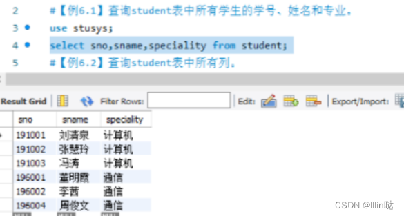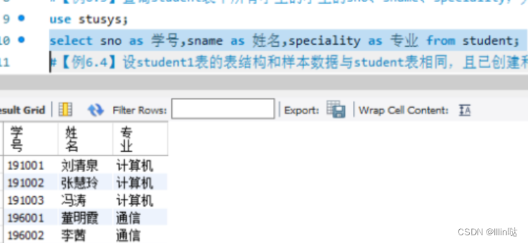 查询student表中所有学生的sno,sname,speciality,并将结果中各列的标题分别修改为学号,姓名,专业