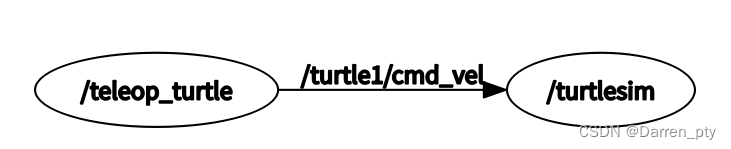 /teleop_turtle 节点向话题/turtle1/cmd_vel 发布消息, 而/turtlesim 节点订阅了这些消息