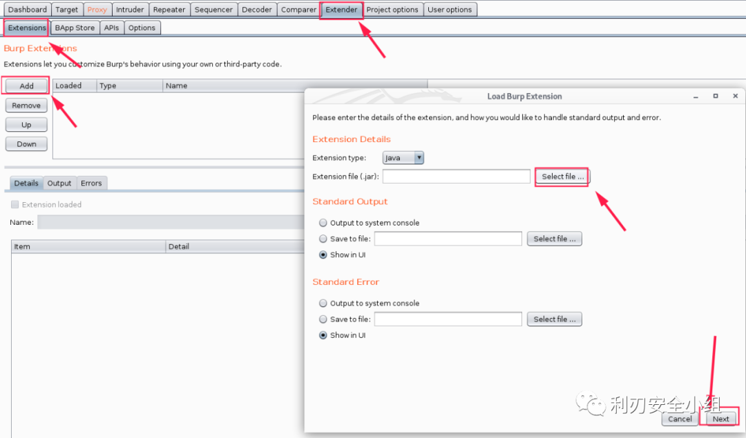 在burp中导入,打开burpsuite--Extender--Extensions--Add--Select file