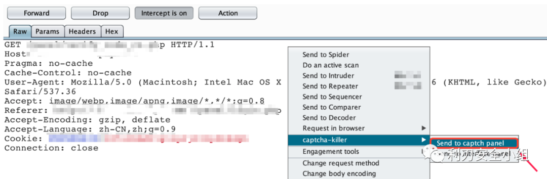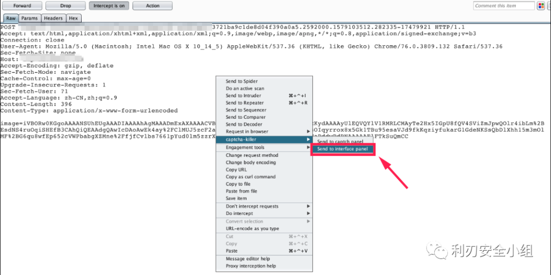 先拦一个短信验证码的包,右键captcha-kiler--sent to captch panel